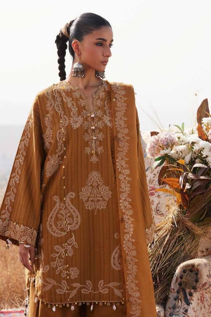 Heer — a wild fabled tapestry brought to life on a spiced saffron jacquard shirt and trouser, draped in a soft woolen shawl. Threads of magic and myth entwine across the fabric, creating a story that’s untamed, bold, and effortlessly winter-ready. Heer is for the woman who carries legends with every step.